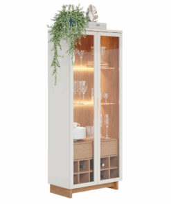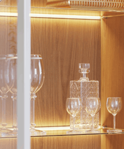 Móvel sofisticado e com muita funcionalidade, a cristaleira ajuda muito na organização da sala de jantar. O modelo Guanabara oferece ótimo espaço interno para você acomodar suas taças e utensílios, deixando tudo sempre arrumado para os momentos de confraternização com os amigos. Além de receber utensílios, a peça também tem nichos específicos para garrafas, ou seja, é completa para que os momentos de confraternização na sua casa fiquem ainda mais agradáveis. O charme especial para a décor fica por conta do design, que conta com portas de vidro e com fita LED no interior, responsáveis por levar um toque todo sofisticado ao lar-style.
