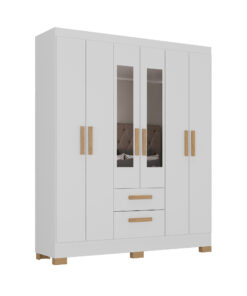 O Roupeiro 6 Portas 2 Gavetas Fortaleza é ideal para quem busca um móvel robusto, funcional e elegante para o quarto. Sua construção em MDP de alta qualidade, acabamento em pintura UV, e design bem pensado com múltiplas portas, gavetas e divisórias proporcionam uma organização eficiente e um toque de sofisticação ao ambiente.