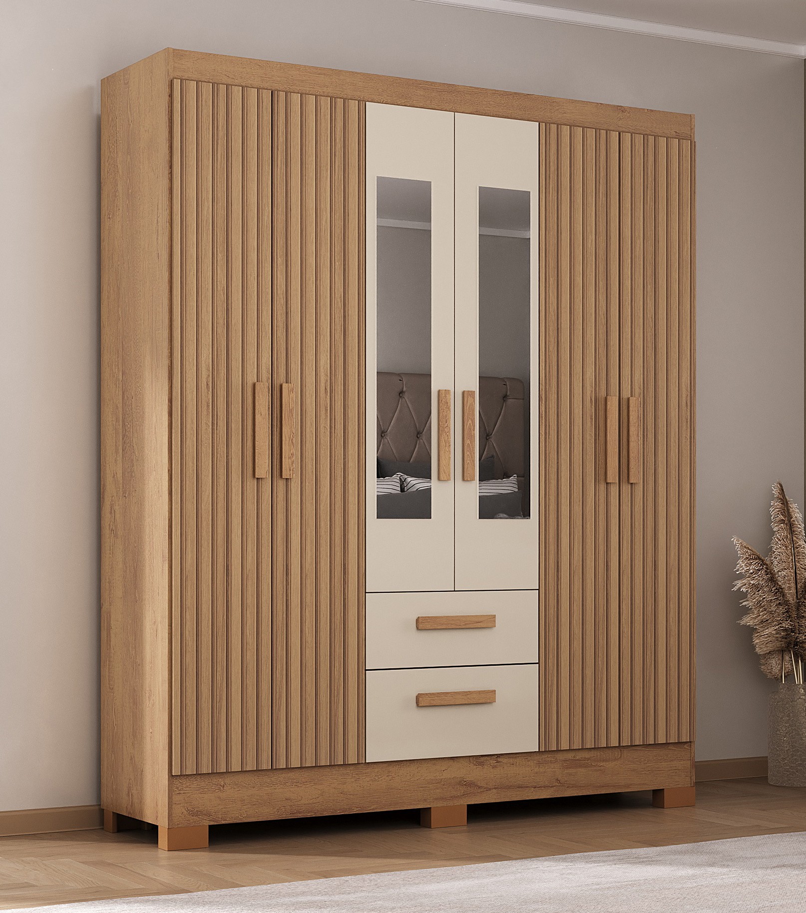 - Amplo Espaço de Armazenamento: As múltiplas portas, prateleiras e divisórias permitem uma organização eficiente de suas roupas e objetos.