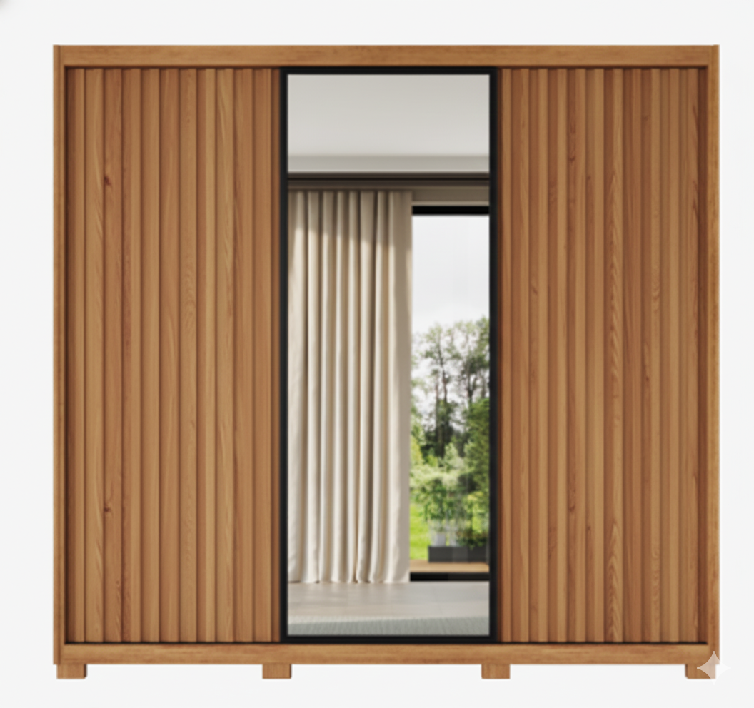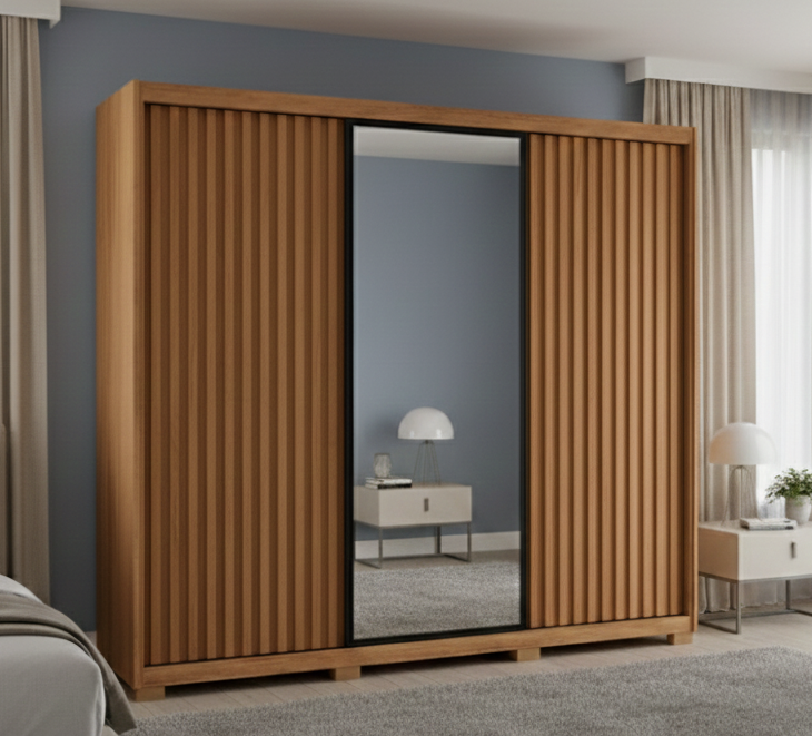 Portas Ripadas: As outras duas portas contam com um sofisticado acabamento ripado em MDF, adicionando textura e um charme contemporâneo.