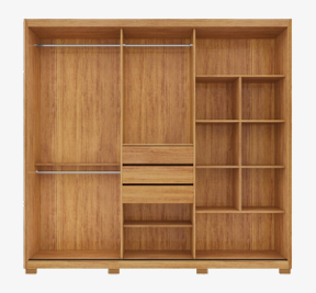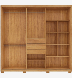 Espaço Interno Inteligente: Além das prateleiras, o guarda-roupa possui um prático nicho em colmeia, ideal para a organização de itens menores como camisetas, roupas íntimas ou acessórios.