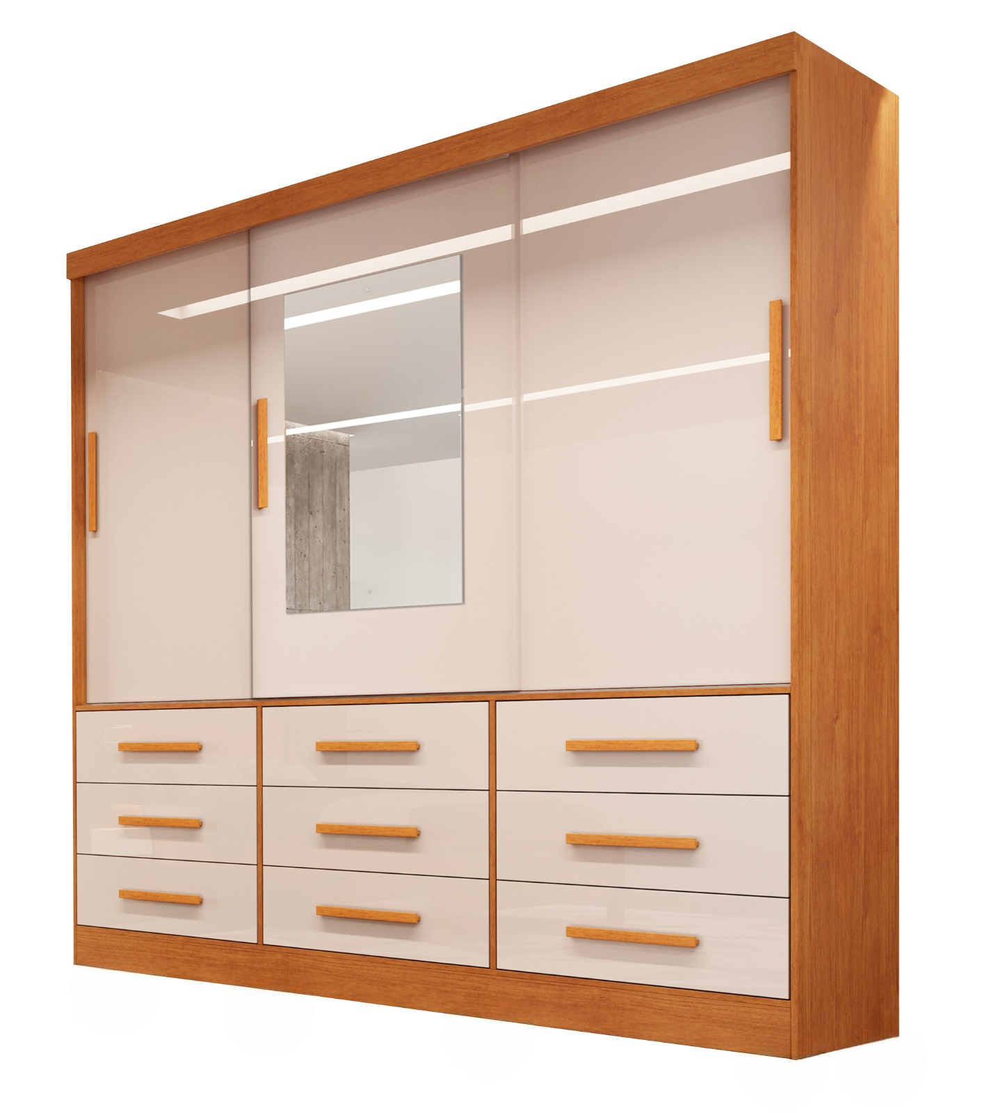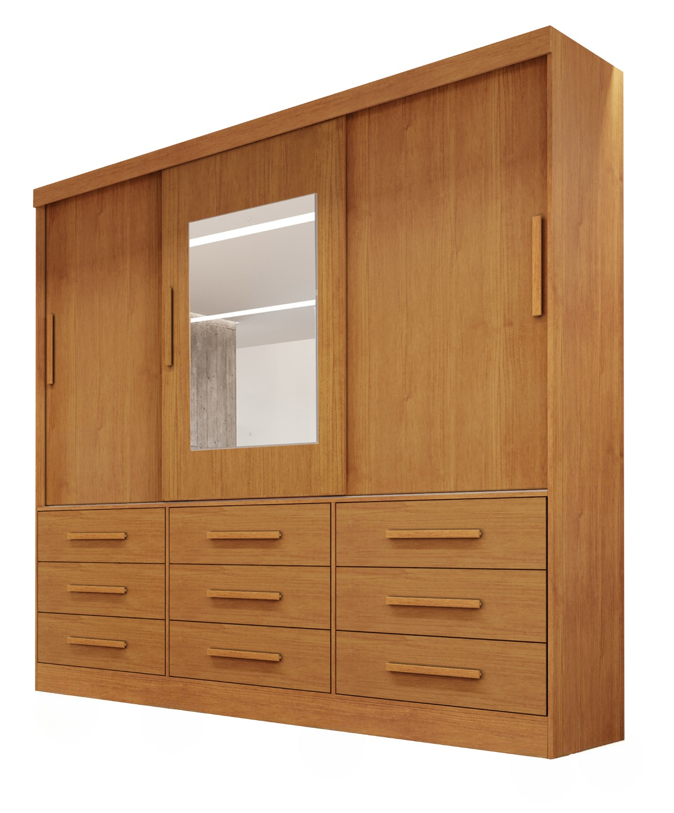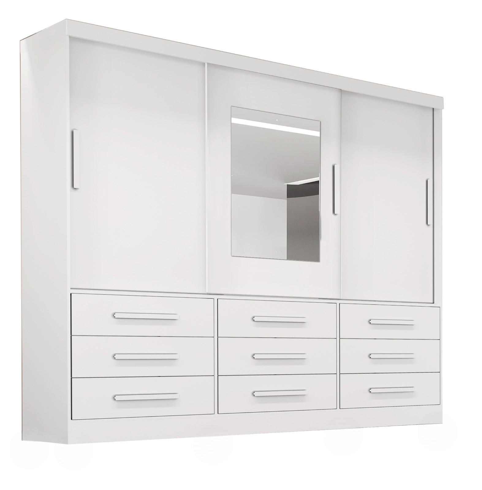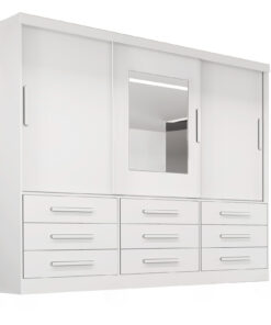 - Amplo Espaço Interno: Com 9 gavetas e 3 portas de correr, oferece espaço suficiente para armazenar roupas e acessórios de maneira organizada