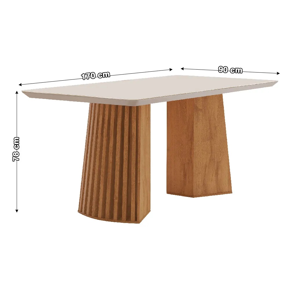 Com medidas de 1,70 m x 0,90 m, essa mesa oferece ótimo espaço para acomodar a família e receber convidados com mais conforto. Seu tamanho é perfeito para quem busca praticidade no dia a dia sem abrir mão de presença decorativa e sofisticação no ambiente.