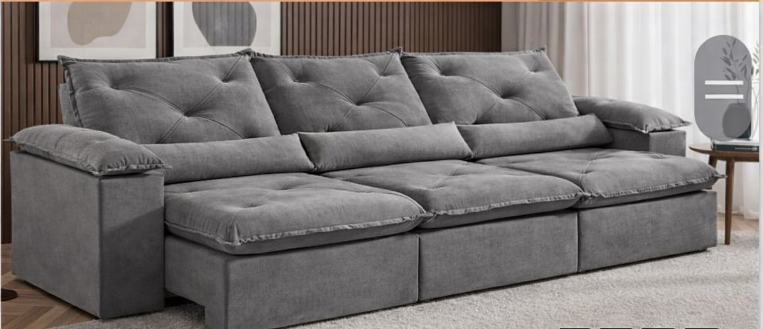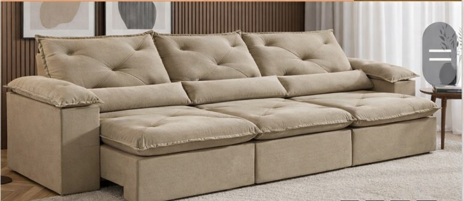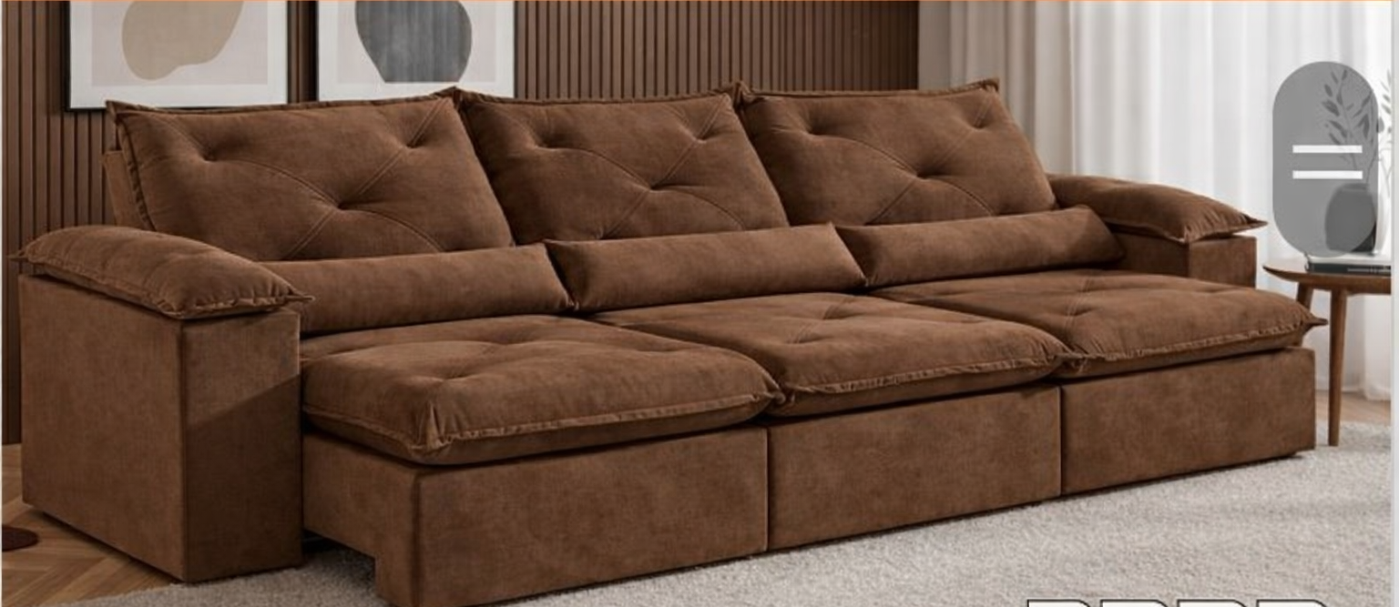 Com 2,75 metros de largura, o modelo é perfeito para quem deseja um sofá amplo, com excelente presença decorativa e ótimo aproveitamento do espaço. Seu sistema retrátil com abertura de 1,40 m proporciona mais conforto no dia a dia, tornando o ambiente ainda mais agradável para assistir TV, relaxar ou receber visitas.