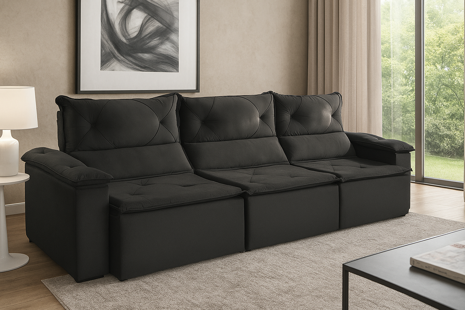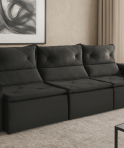- Versatilidade: Com assentos retráteis e encostos reclináveis, o sofá se adapta às necessidades de conforto e espaço da sua família, sendo perfeito tanto para momentos de relaxamento quanto para receber visitas.